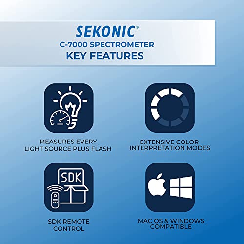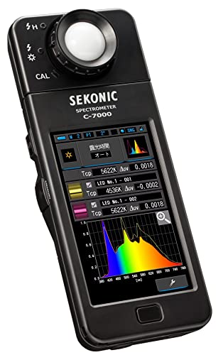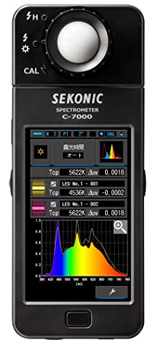 The Sekonic C-7000 SpectroMaster is a precise industrial spectrometer designed to measure light with utmost accuracy. Ideal for various professional applications, it offers functionality suited for quality control, medicine, education, and agriculture. It provides data in increments of 1 Nm in a user-friendly CSV format, enhancing usability for technical assessments and reporting.